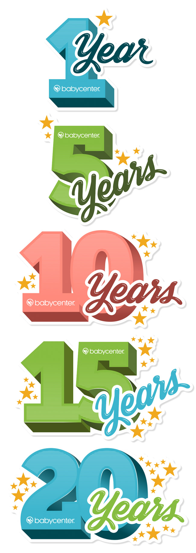 This was one of those projects, with such a wide-open mandate, that you have trouble getting started. "We need a set of anniversary stickers to commemorate years of service at BabyCenter." Aside from the criteria that they be suitably-sized to put on a laptop, I could, literally, take it in any direction.