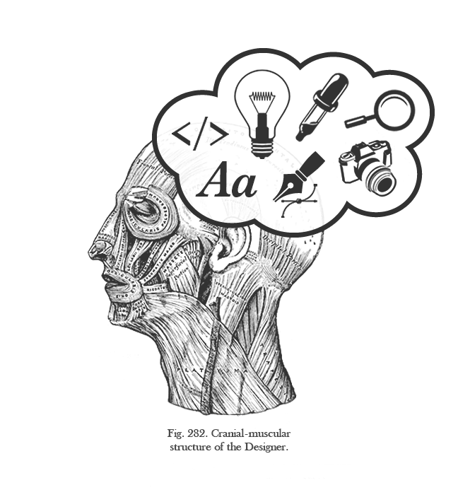 This was the hero image from a previous iteration of my portfolio site. The overall theme was a humorous juxtoposition of old-style imagery, in this case a famous Gray's Anatomy drawing of the human head, with modern elements.